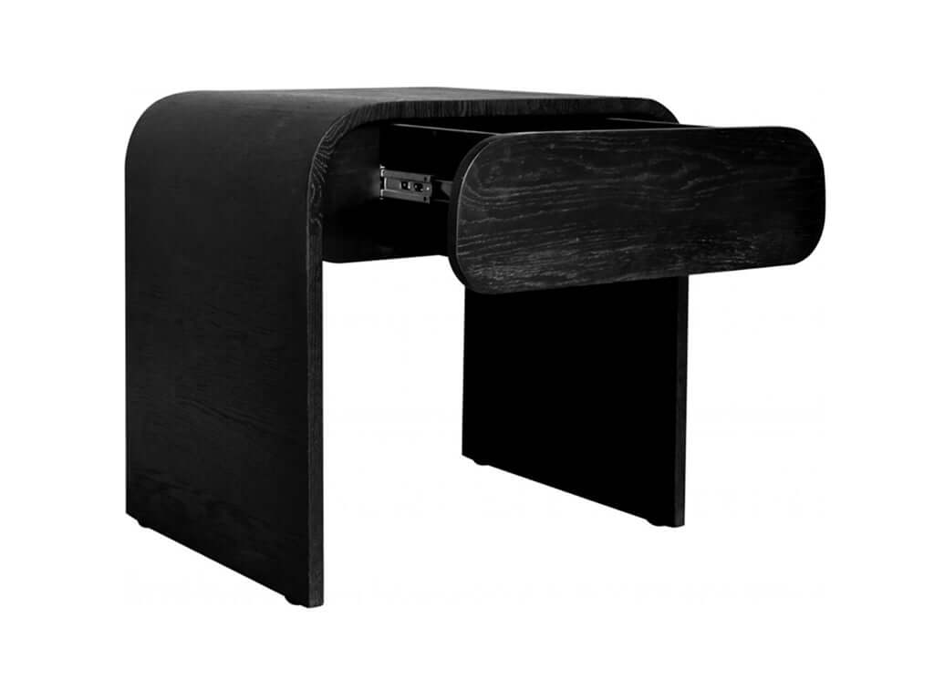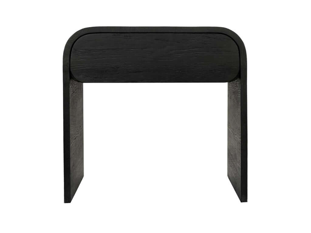 This arched nightstand has deep black color for a sophisticated look. Its shape adds a unique touch to any bedroom, while the real wood construction adds durability. Keep your nighttime essentials close with this functional and classic piece.