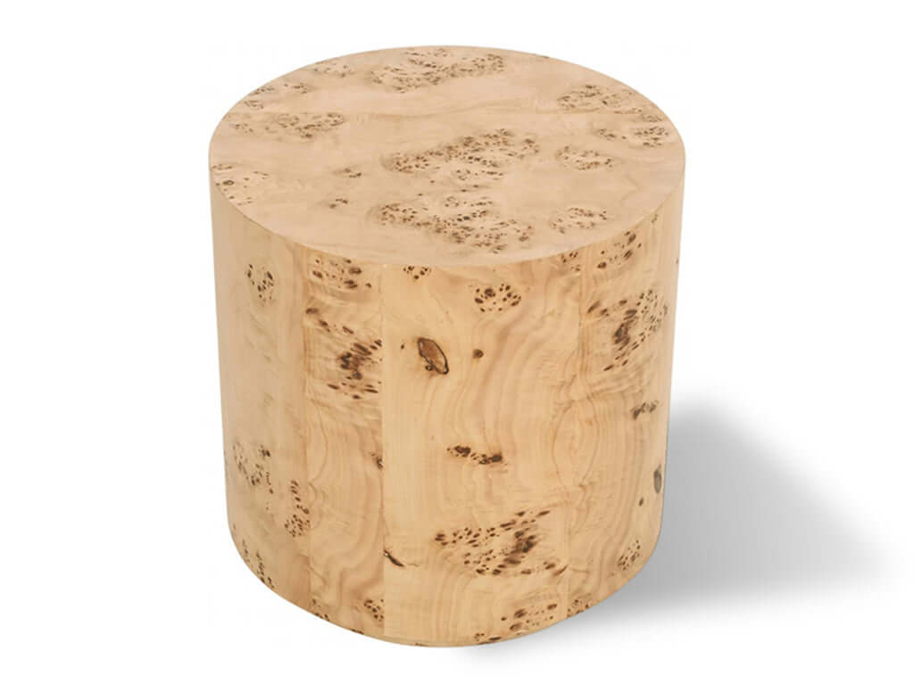 Bring a touch of nature into your living room with our cylinder-shaped real wood side table. Its burled design brings a unique and rustic look to your space, making it the perfect accent piece.