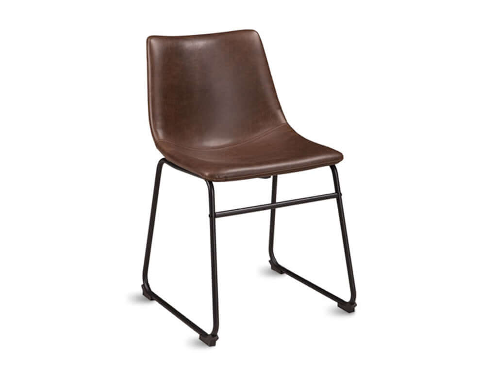 A twist on mid-century style and timeless look, the Fleather Schoop Chair has a distinctive bucket seat with a strong metal base and fleather upholstery.