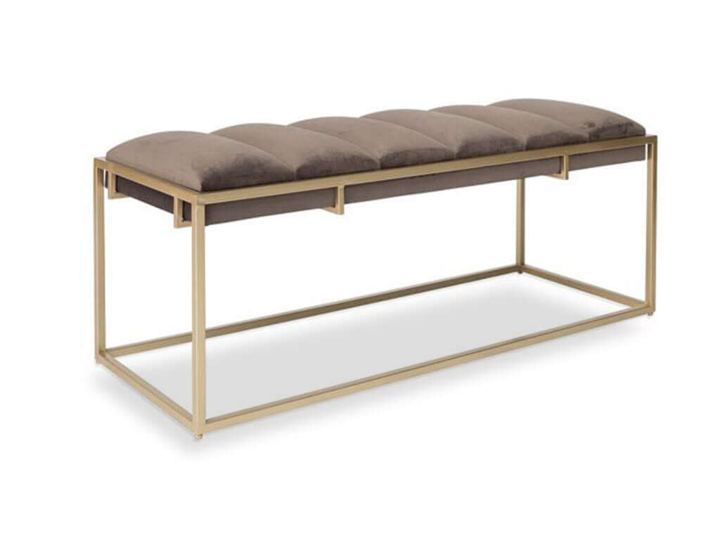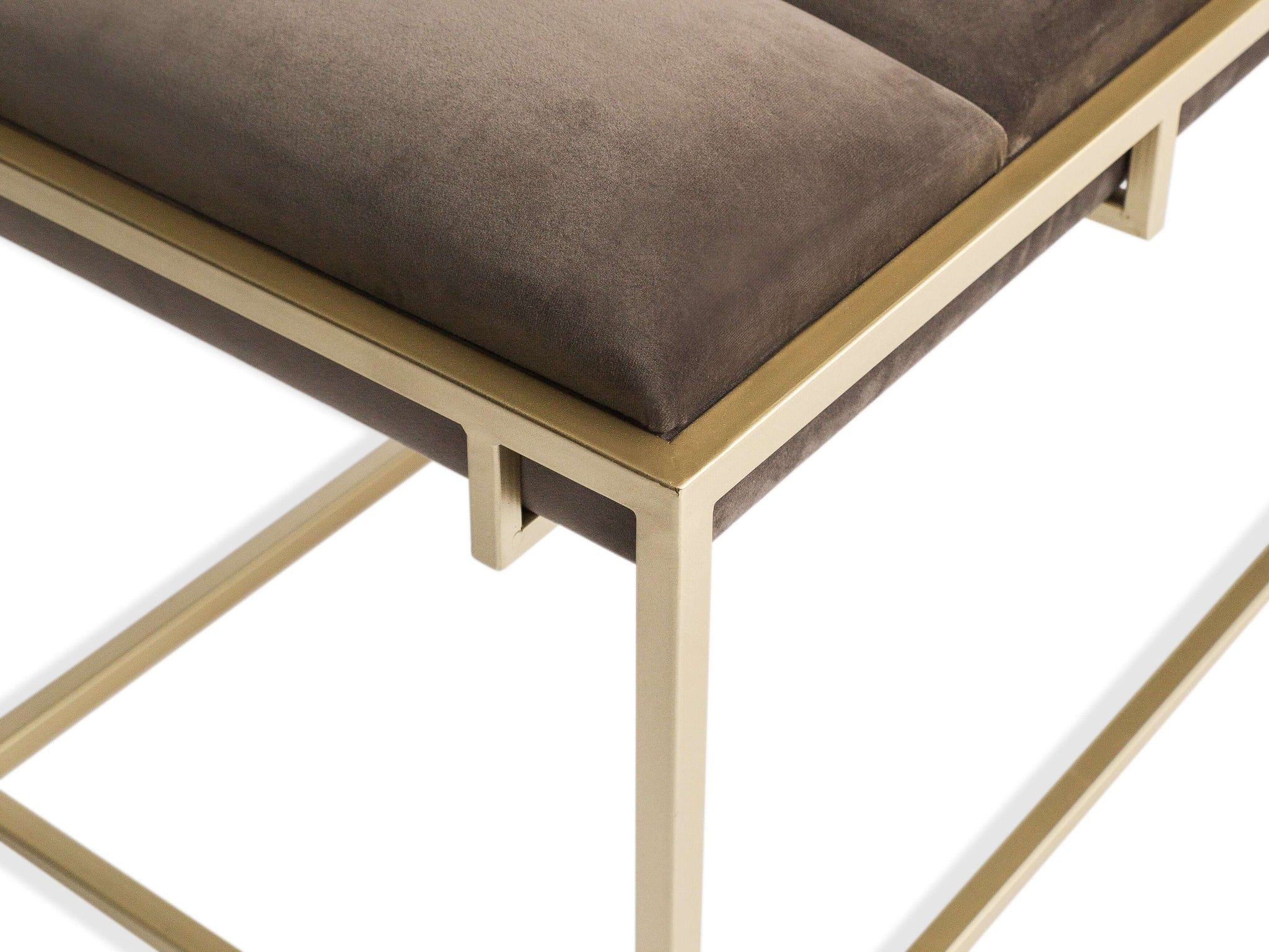 The Gold Lush Bench is able to transition to nearly any room in the home, wherever and whenever extra seating is needed. The steel base is painted brushed gold. Crafted in faux leather, steel with a soft upholstered finish.