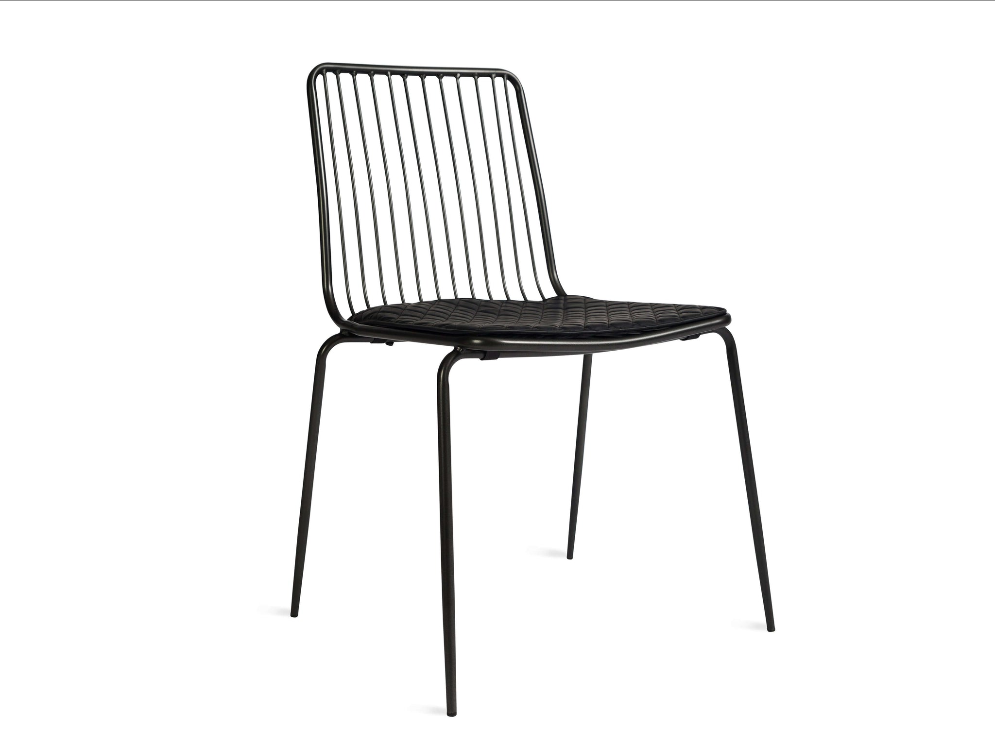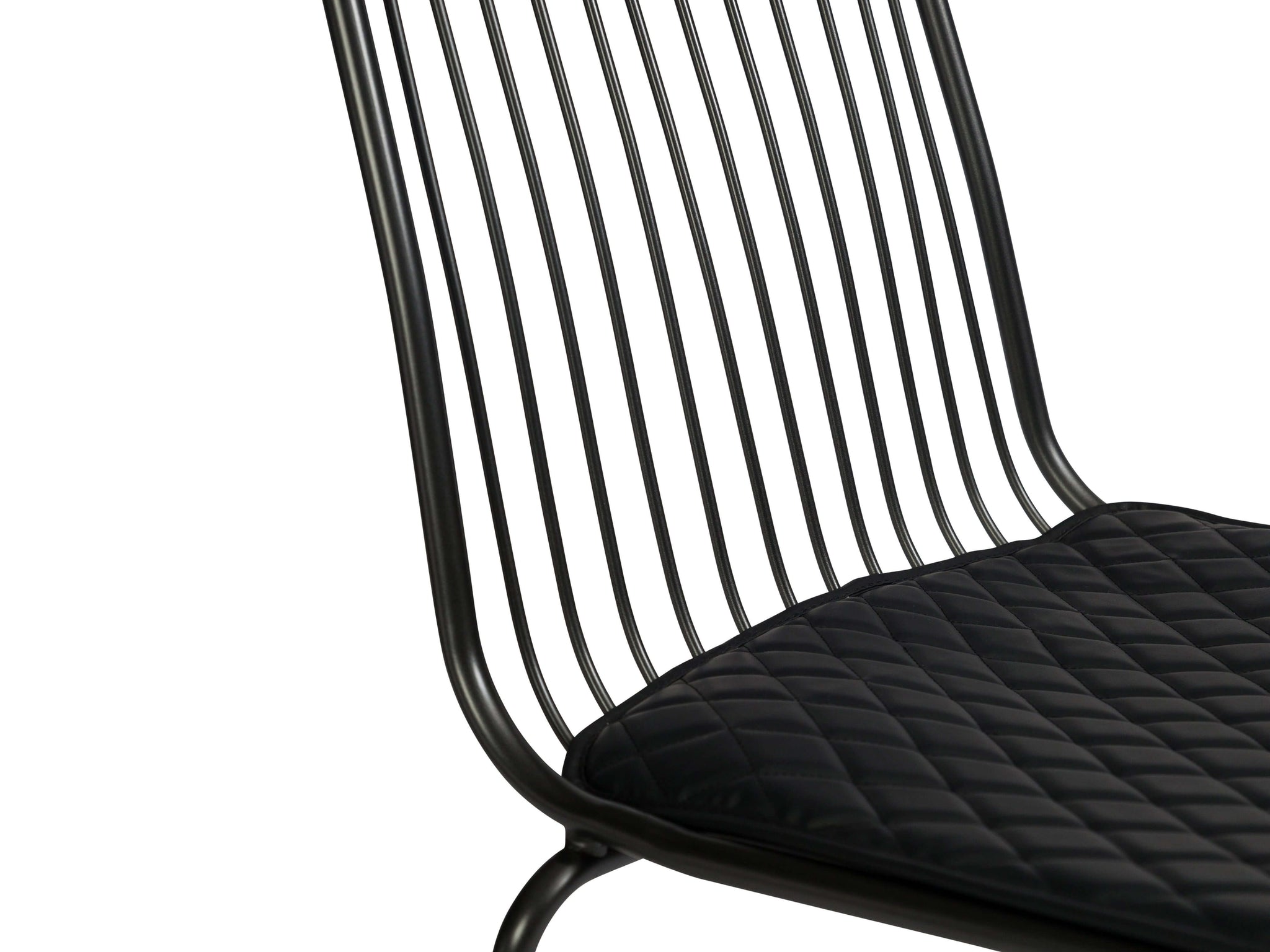 For a minimalist decor with a casual vibe, the Metal Cushion Chair features a thin metal frame with visually appealing wired grid back and diamond quilted seat pad for comfort.