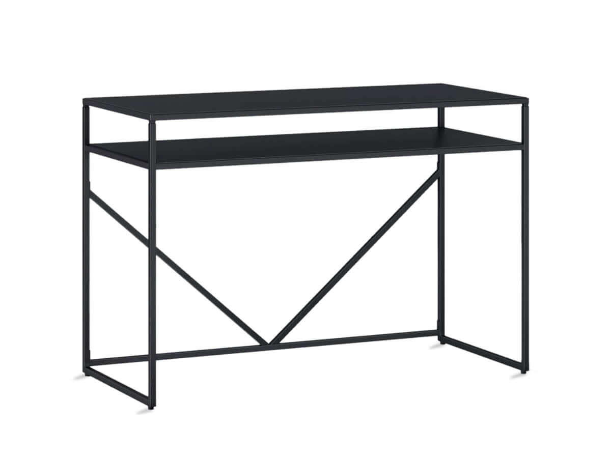 Made with powder-coated steel, this black metal computer desk features a sleek design with ample space to accommodate your electronic devices. This sturdy modern computer desk comes with an open shelf under the top that offers ample space for you to keep your books and other office supplies neat and well organized.