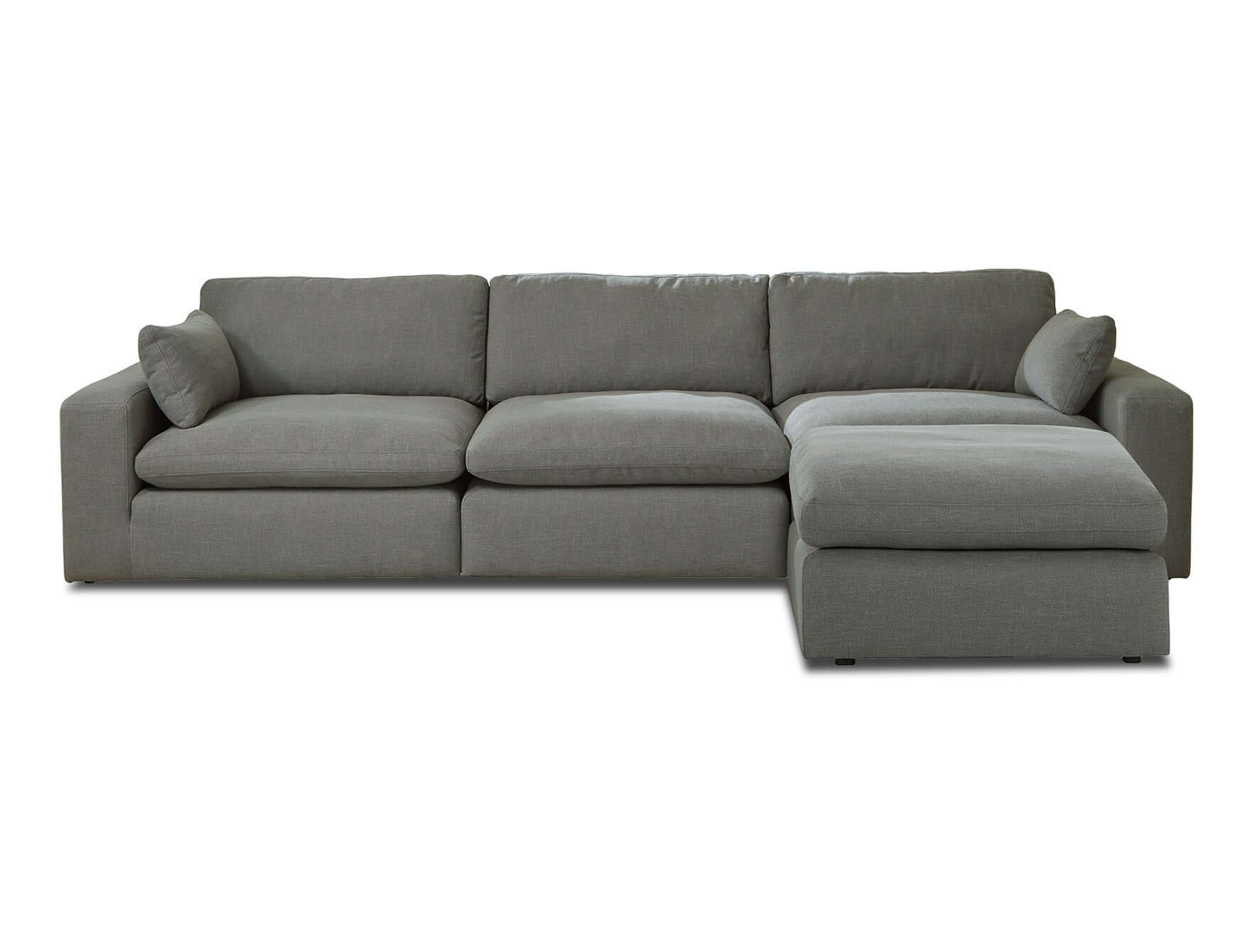 The Modular Cloud Sectional is both stylish and comfortable. The loose reversible cushions are filled with a feather-fiber blend encasing a foam core. Best of all, the modular design lets you stage the pieces solo or group them in various configurations to suit your needs. This sectional includes 4 pieces: a left-arm facing corner chair, right-arm facing corner chair, an armless chair, and an ottoman.