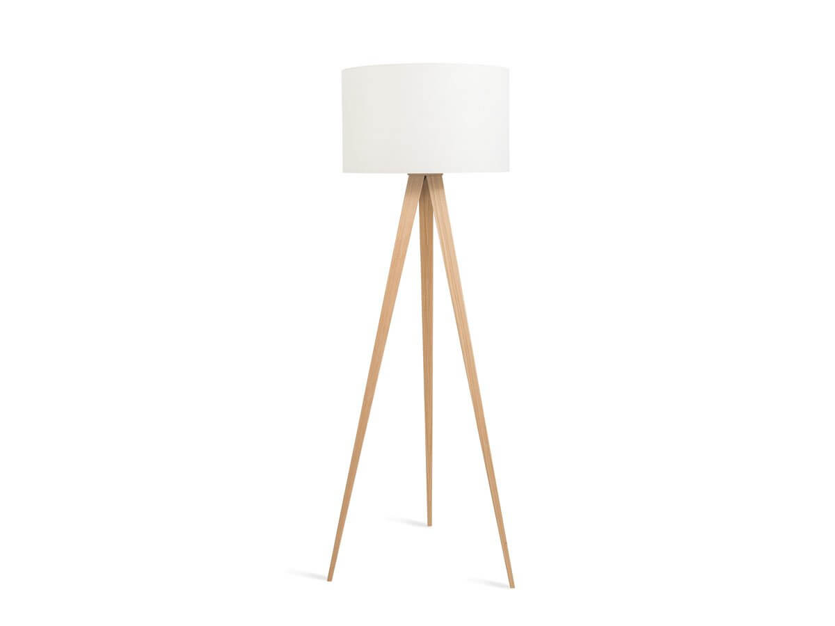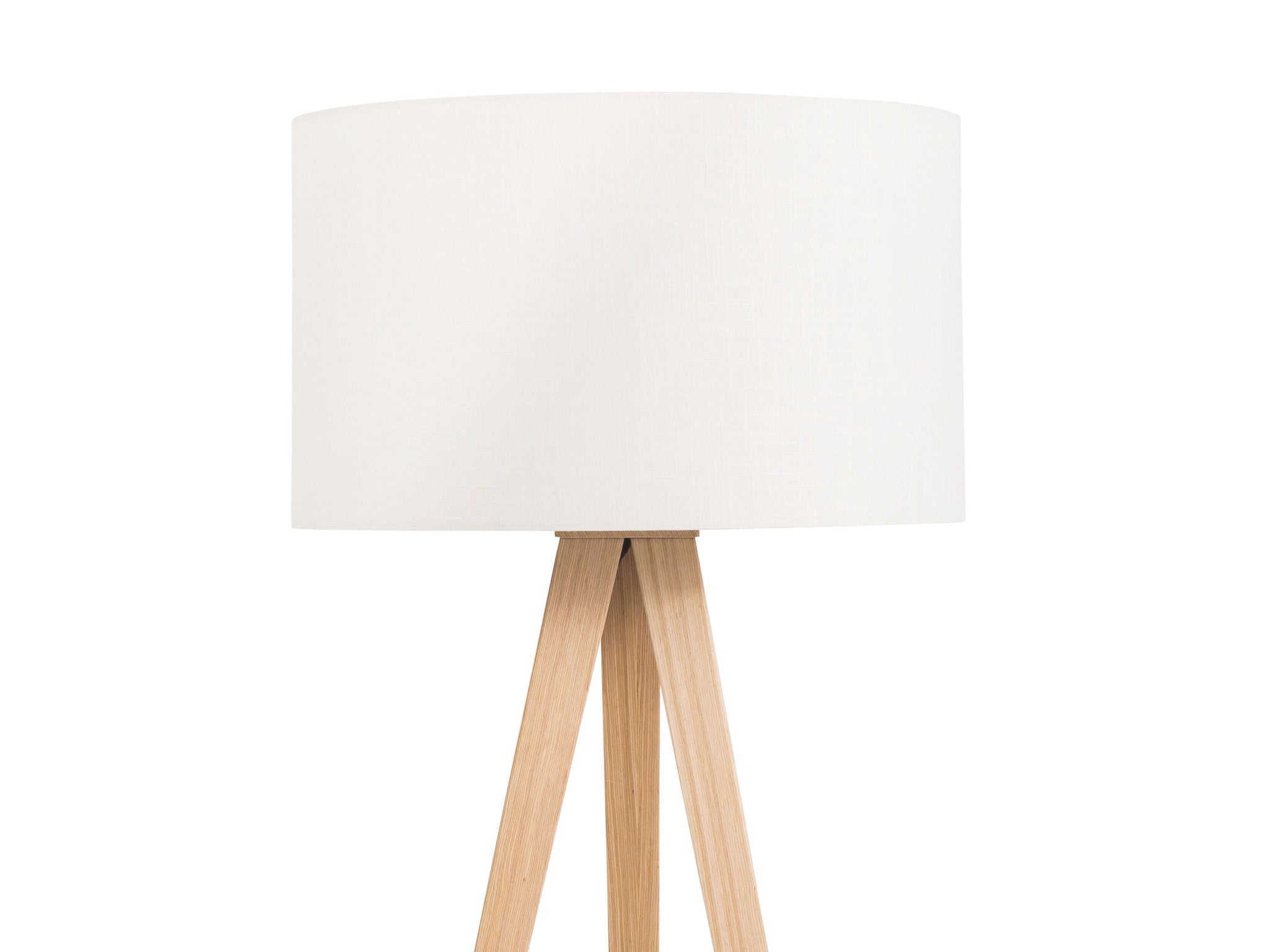 Introduce some drama to your living room with this trio floor lamp. The natural wood tripod legs are an angular counterpoint to the off-white linen textured drum shade. This floor lamp takes up some real estate, but it's worth every inch.