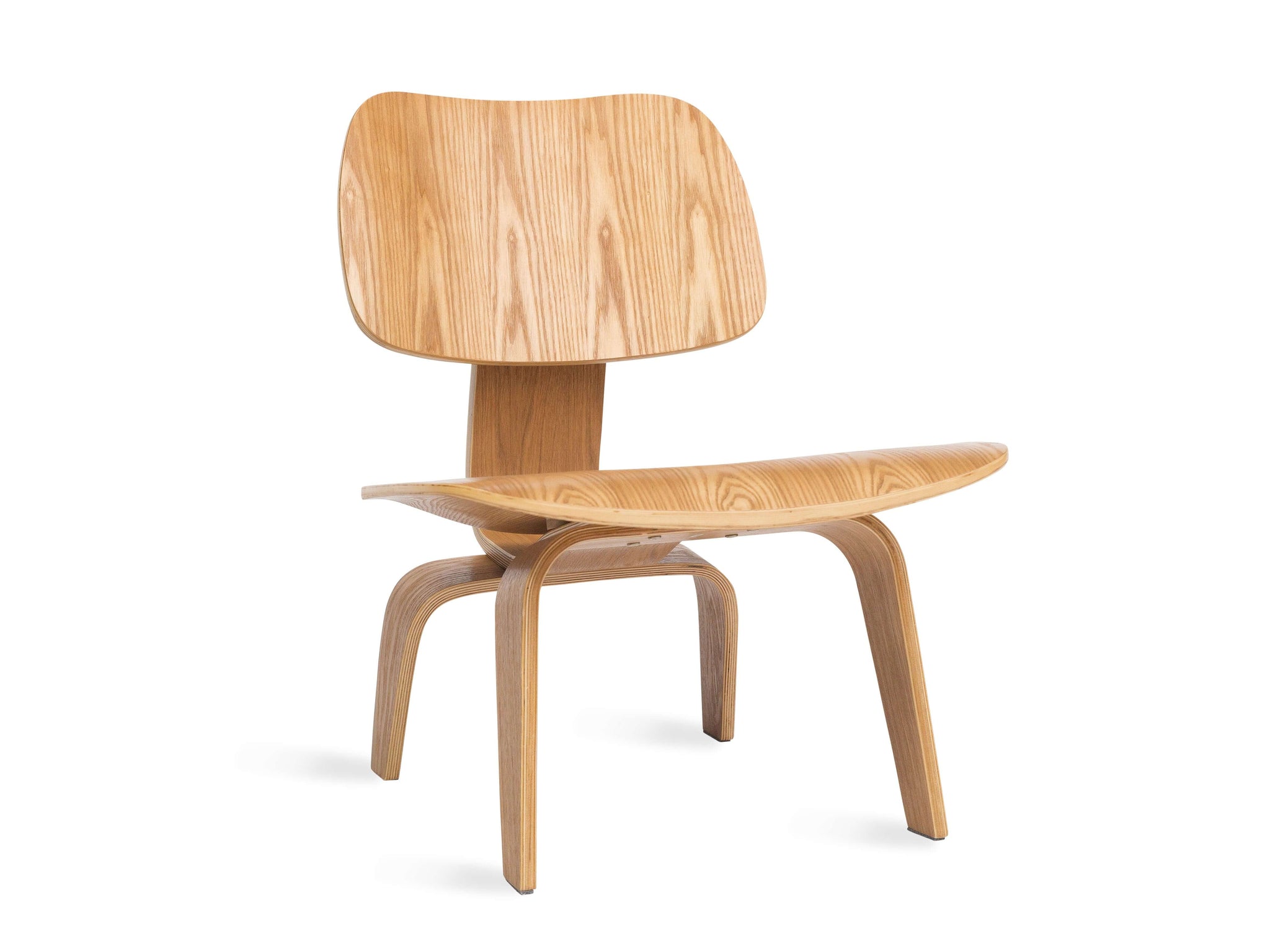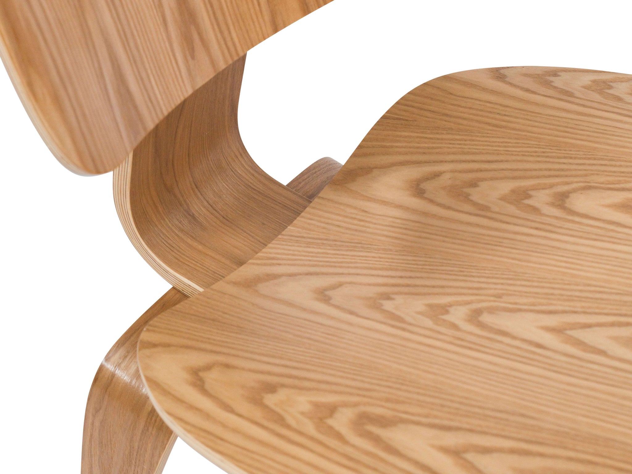 Sculpted form of the molded plywood chairs are produced using thin sheets of lightweight veneer gently molded into curved shapes with natural rubber shock mounts to absorb movement.