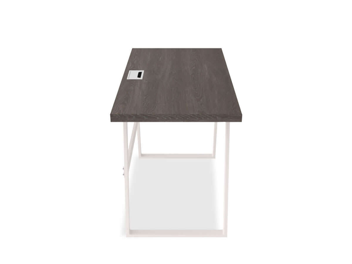This office desk is designed to raise your productivity by packing more work area into less space. Sporting a two-tone treatment replicated gray wood top with an antiqued white base. Made of engineered wood and laminated paper.